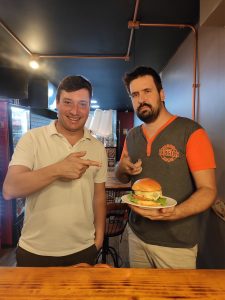 Danilo Galzerano, organizador do concurso, e Leandro Bueno de Oliveira, do Kombina Burguer vencedor do Burguer da Galera de 2020