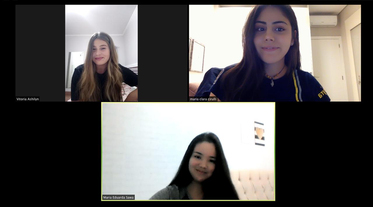 Alunas fazem reunião on-line para alinhar detalhes da campanha