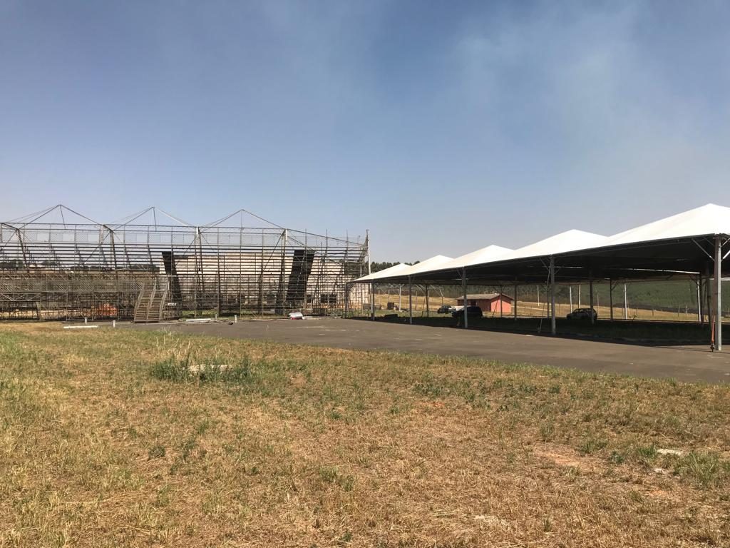 Do outro lado da arena, os camarotes corporativos já foram montados. Cada um terá capacidade para 10 pessoas. No mesmo setor ficará o camarote Premium, que será open food e open bar a noite toda. Toda essa estrutura fica ao lado dos banheiros de alvenaria do Espaço Rodeio.