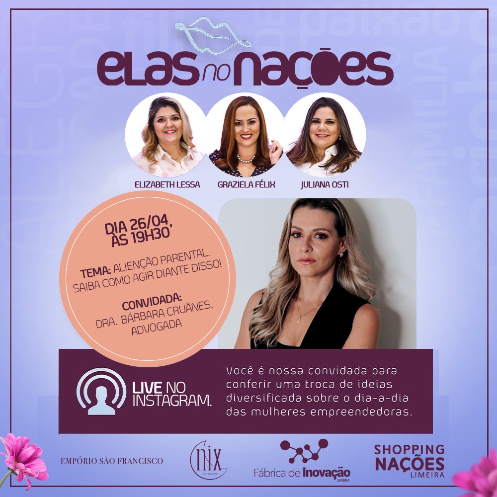 O “Elas no Nações” teve início em outubro do ano passado e, desde então, tem trazido para discussão diversos temas ligados ao universo feminino. A intenção é sempre oferecer conteúdo de qualidade que vão ao encontro das necessidades do público que já acompanha as lives promovidas pelo Shopping.