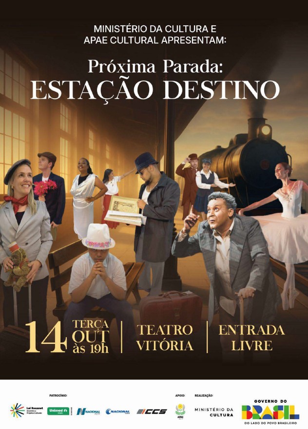 O Ministério da Cultura e a APAE Limeira oferecem uma experiência que mistura dança, música e teatro. O projeto APAE Cultural apresenta o espetáculo “Próxima Parada: Estação Destino!” no Teatro Vitória, em 14 de outubro, às 19h.