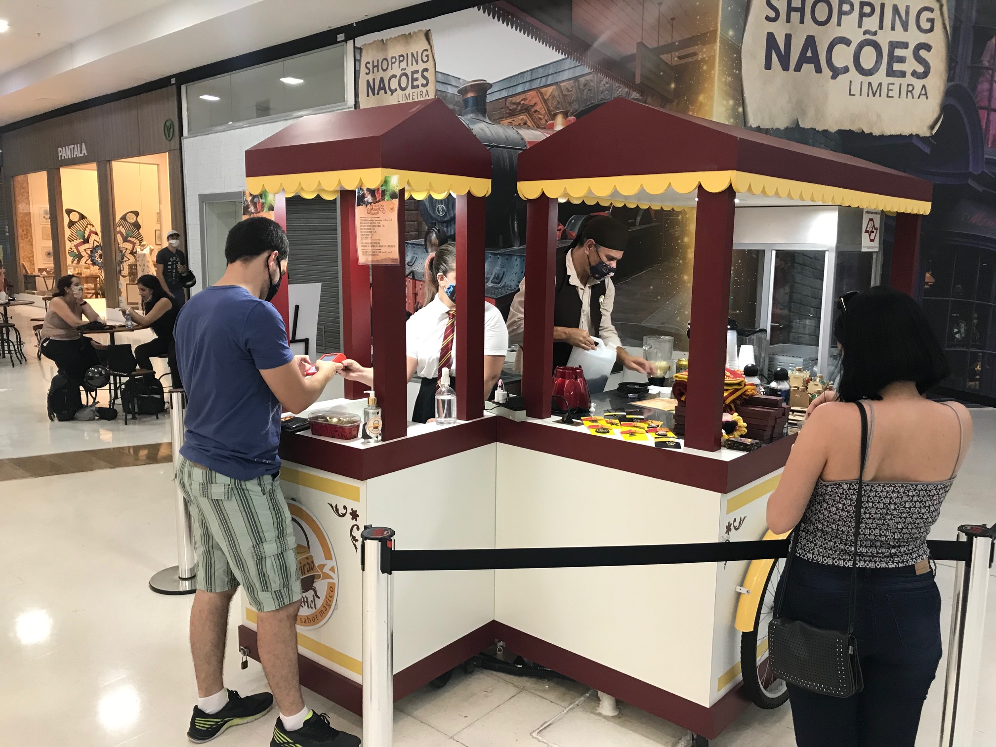 O público degusta o cardápio inspirado na trilogia ao lado de painéis instagramáveis. Os cenários levam os fãs para o beco diagonal, aldeia de Hogsmeade, na sala de Dumbledore e embarcar no Expresso Hogwarts. “Os painéis serão fixos e fazem parte da reformulação visual do Nações”, explicou Luciana Bragante Nasr, administradora do Shopping.