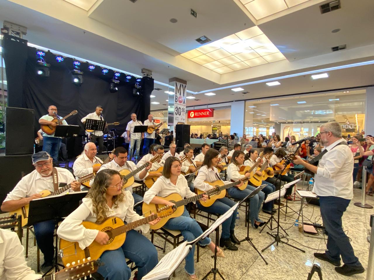 A Orquestra de Violeiros Tom da Terra se apresenta no palco da Praça de Alimentação a partir das 14h. O show é gratuito.