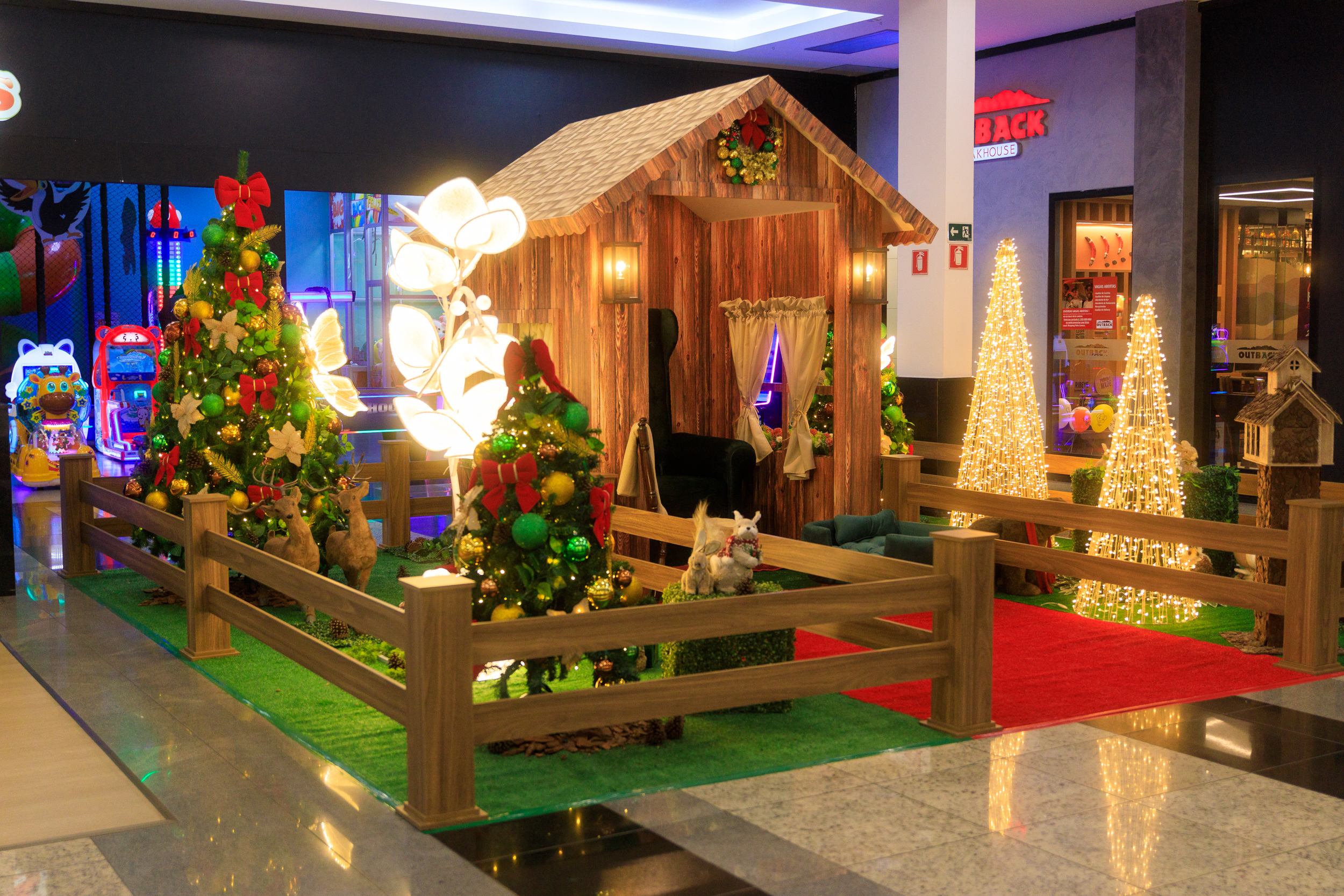 A decoração principal de Natal fica no piso superior, em frente à loja Kalunga, e conta com brinquedos como escorregador em formato de tronco e outros espaços lúdicos para diversão das crianças.